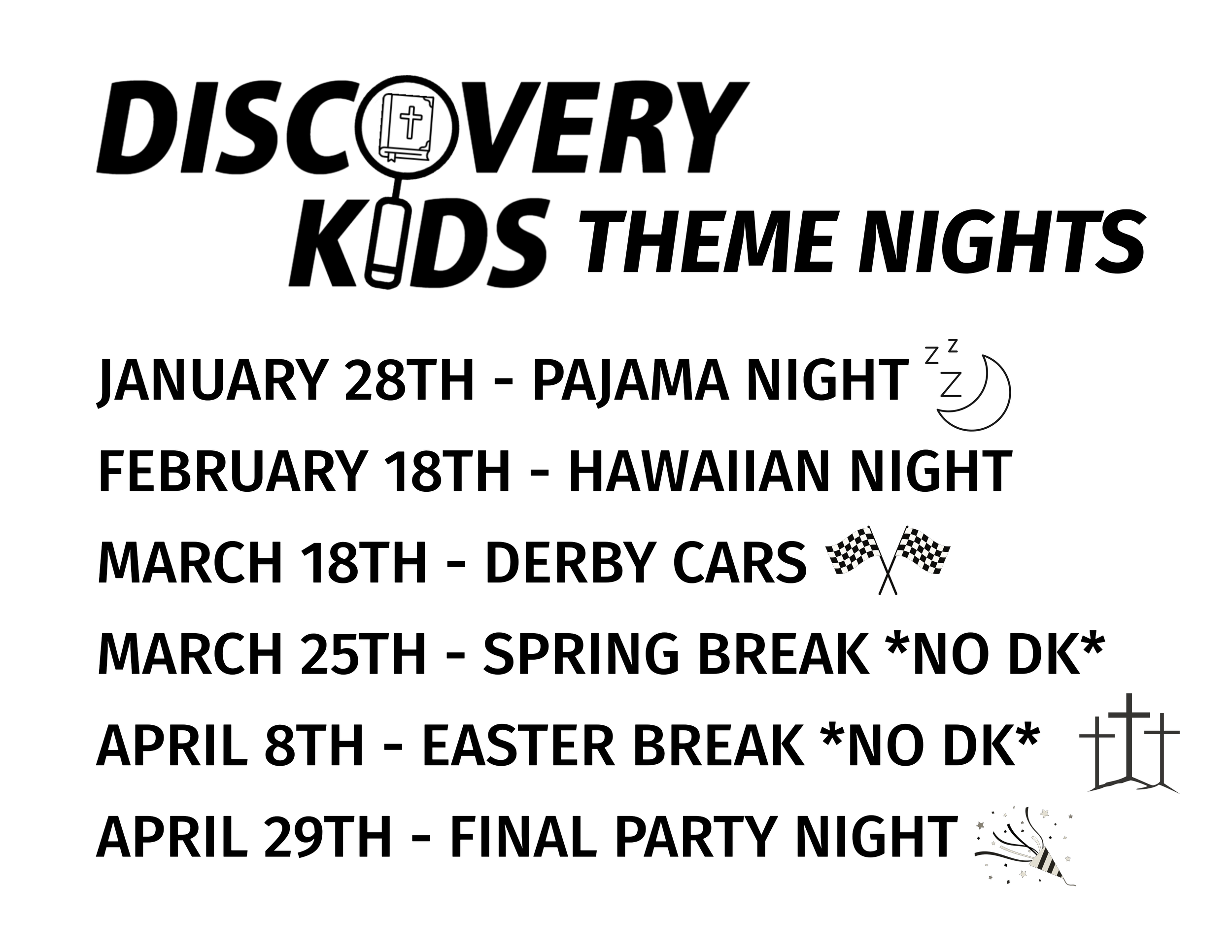 Discovery Kids meets on Wednesdays (September - April) from 6:00 - 7:30 pm.
